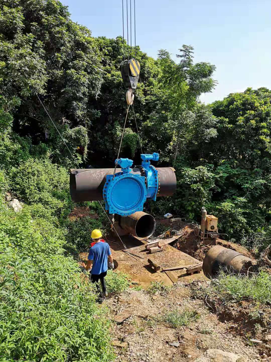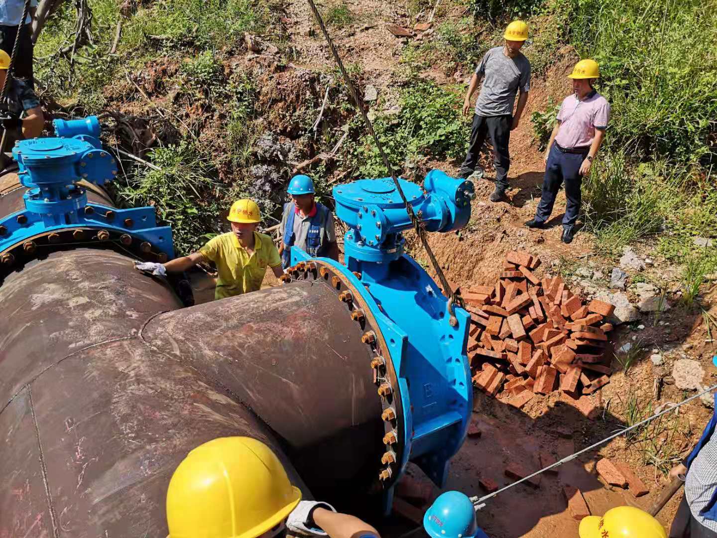 2019年9月7日,因兴合线工业园区段道路扩宽,需迁移DN1200(直径1.2米)主输水管,进行两处新旧管线开口转接